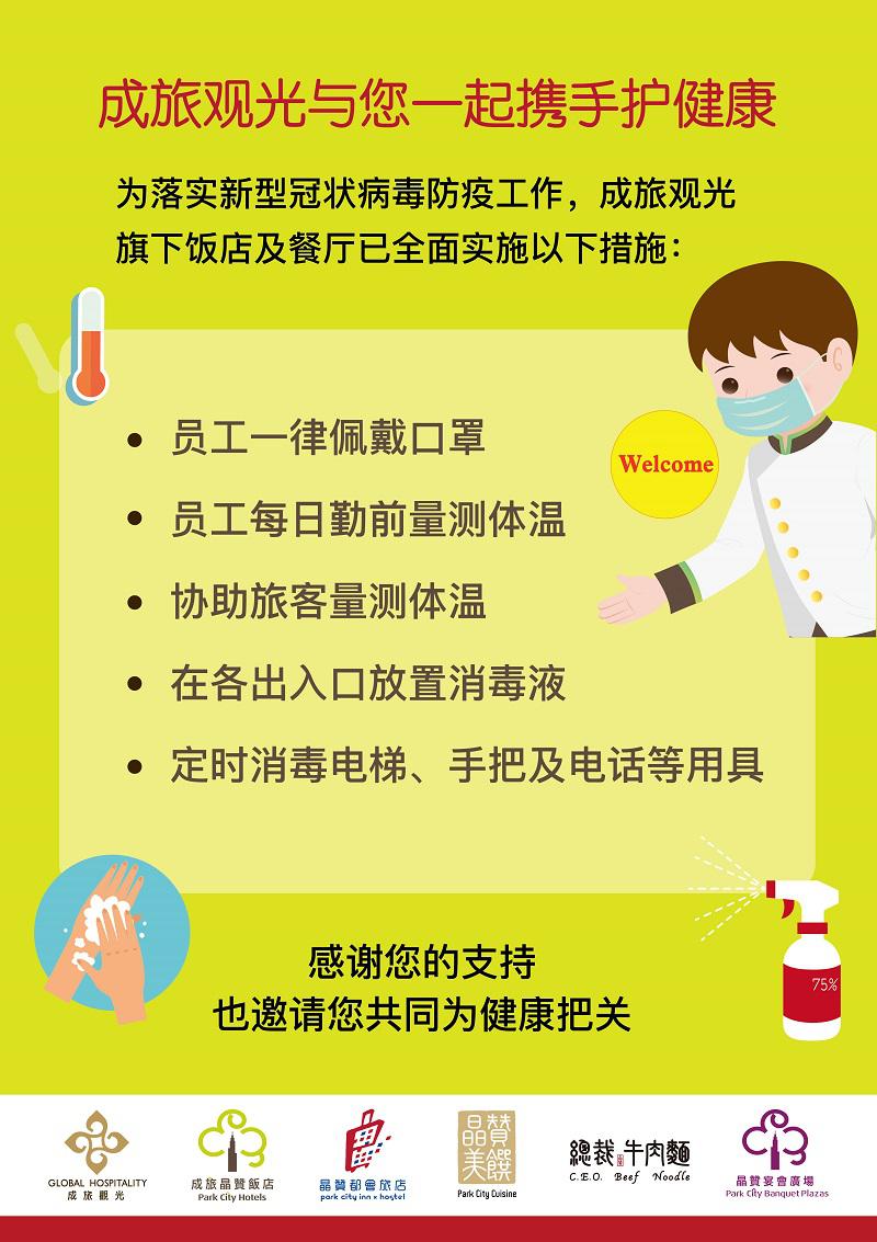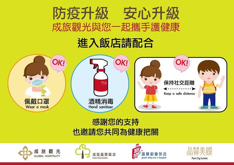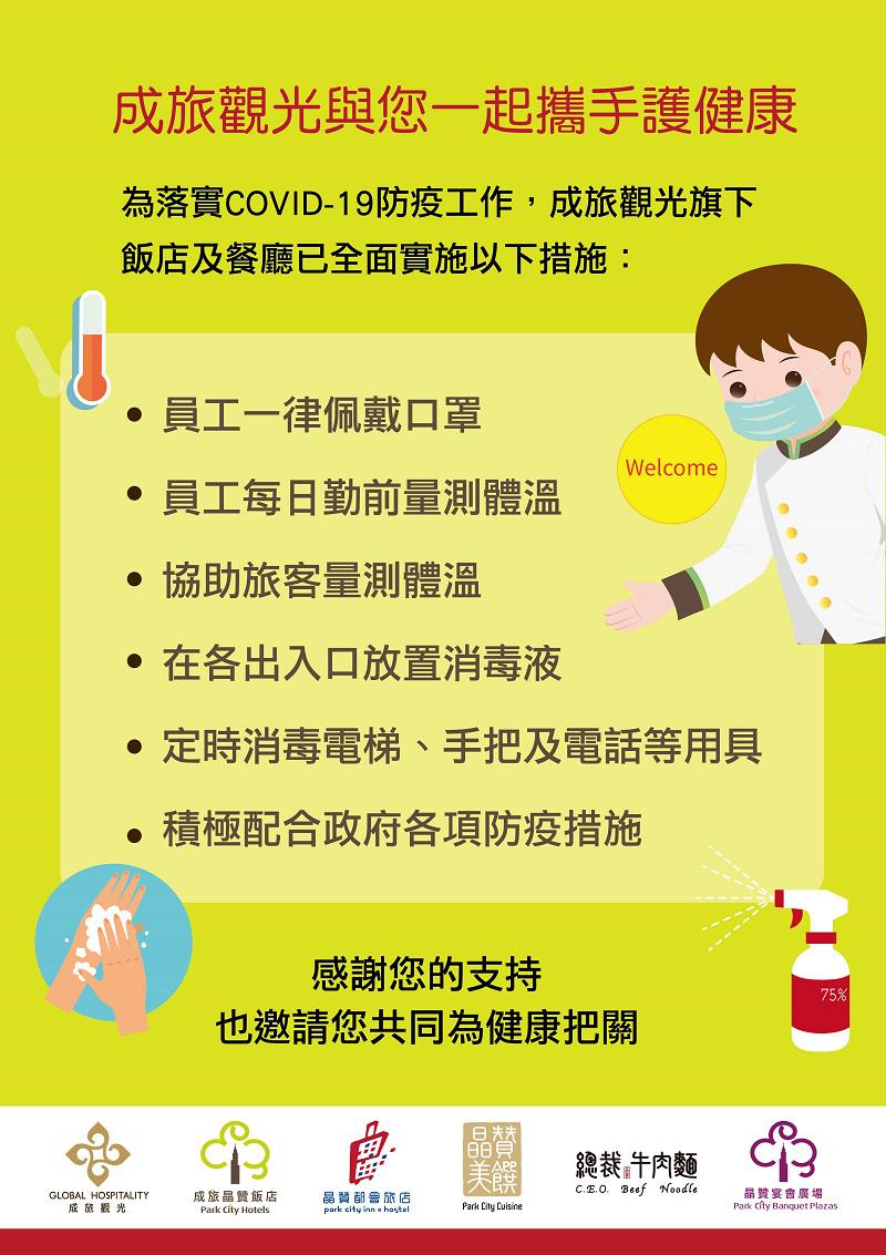 為落實COVID-19防疫工作,成旅觀光旗下飯店及餐廳已全面實...