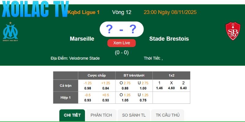 Bảng tỷ lệ kèo trận Olympique Marseille – Brest